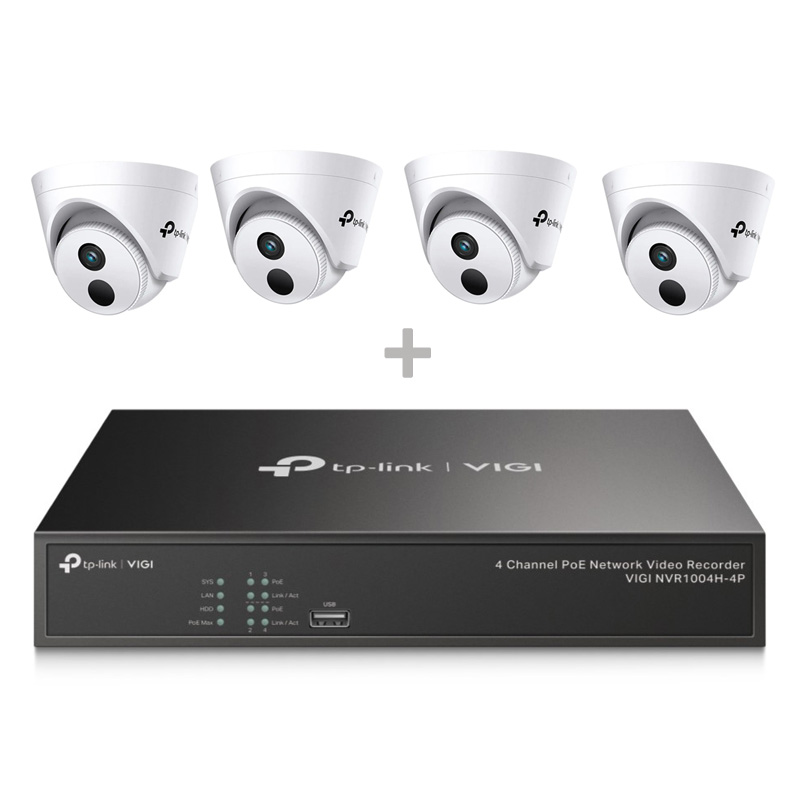 TP-LINK 4 Channel POE Network video Recorder 4 FE POE PORTS – VIGI NVR 1004H-4P with 4x TP-LINK VIGI 3MP Turret Network Camera H.265 VIGI C400HP-2.8 – 2.8mm Fixed Lens